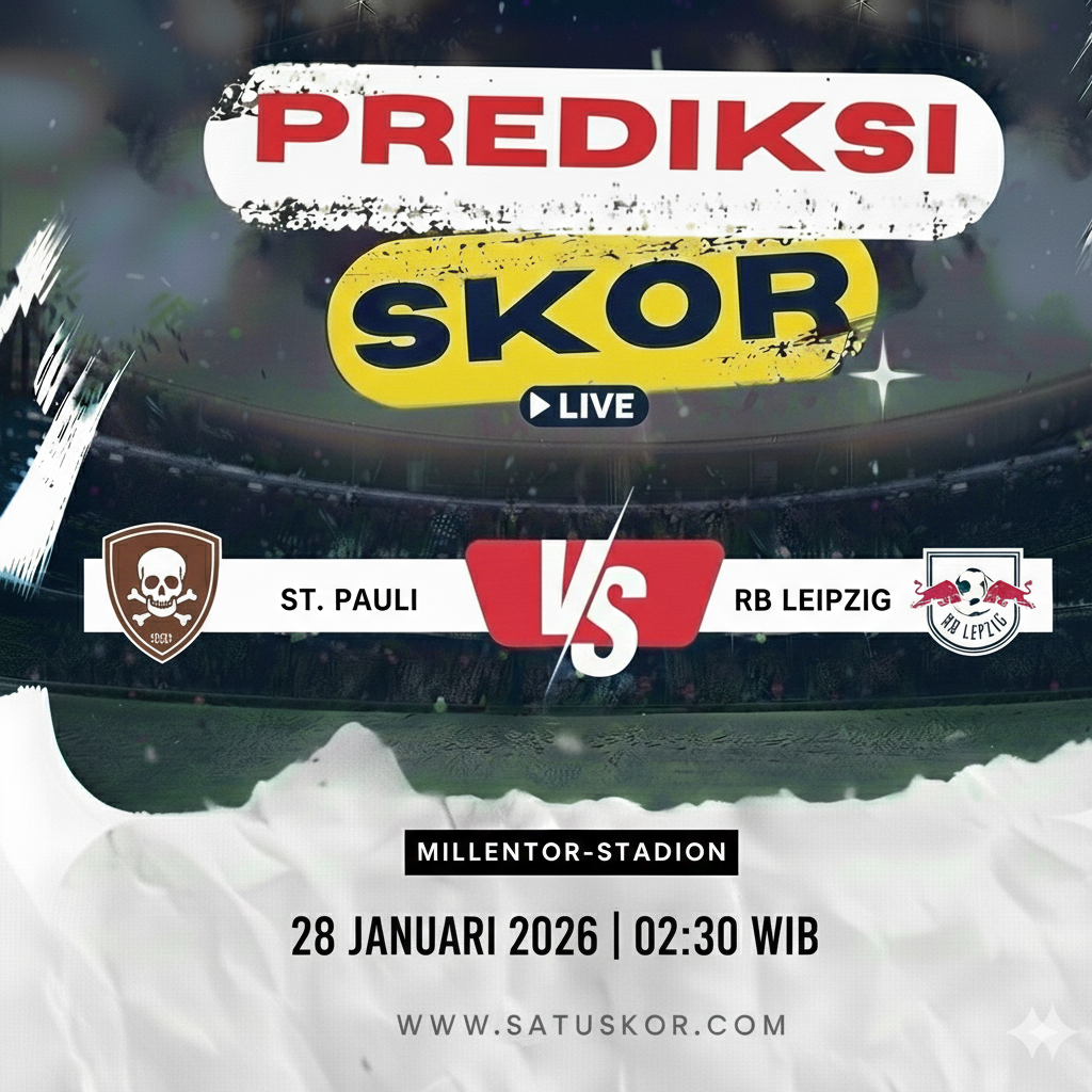 Satuskor.com – Prediksi pertandingan menarik akan tersaji pada Rabu, 28 Januari 2026, ketika St. Pauli vs RB Leipzig dalam lanjutan kompetisi Bundesliga 2025/2026. Laga akan berlangsung di Millerntor-Stadion pada pukul 02:30 WIB dan disiarkan melalui beIN Sports serta platform streaming resmi Bundesliga.