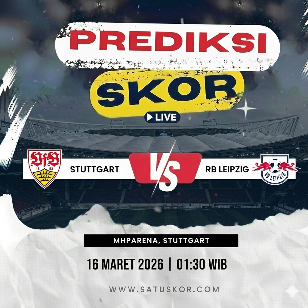 Satuskor.com – Prediksi pertandingan menarik akan tersaji pada Senin, 16 Maret 2026, ketika Stuttgart vs RB Leipzig dalam lanjutan kompetisi Bundesliga 2025/2026. Duel ini akan berlangsung di MHPArena pada pukul 01:30 WIB dan diperkirakan disiarkan melalui beIN Sports serta layanan streaming Vidio.