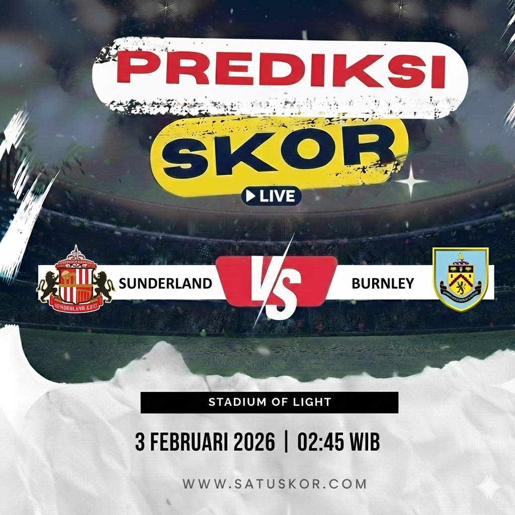 Satuskor.com – Prediksi laga menarik akan tersaji pada Selasa, 3 Februari 2026, ketika Sunderland vs Burnley dalam lanjutan kompetisi EFL Championship 2025/2026. Pertandingan akan berlangsung di Stadium of Light pada pukul 02:45 WIB dan dapat disaksikan melalui iFollow EFL serta platform streaming resmi masing-masing klub.