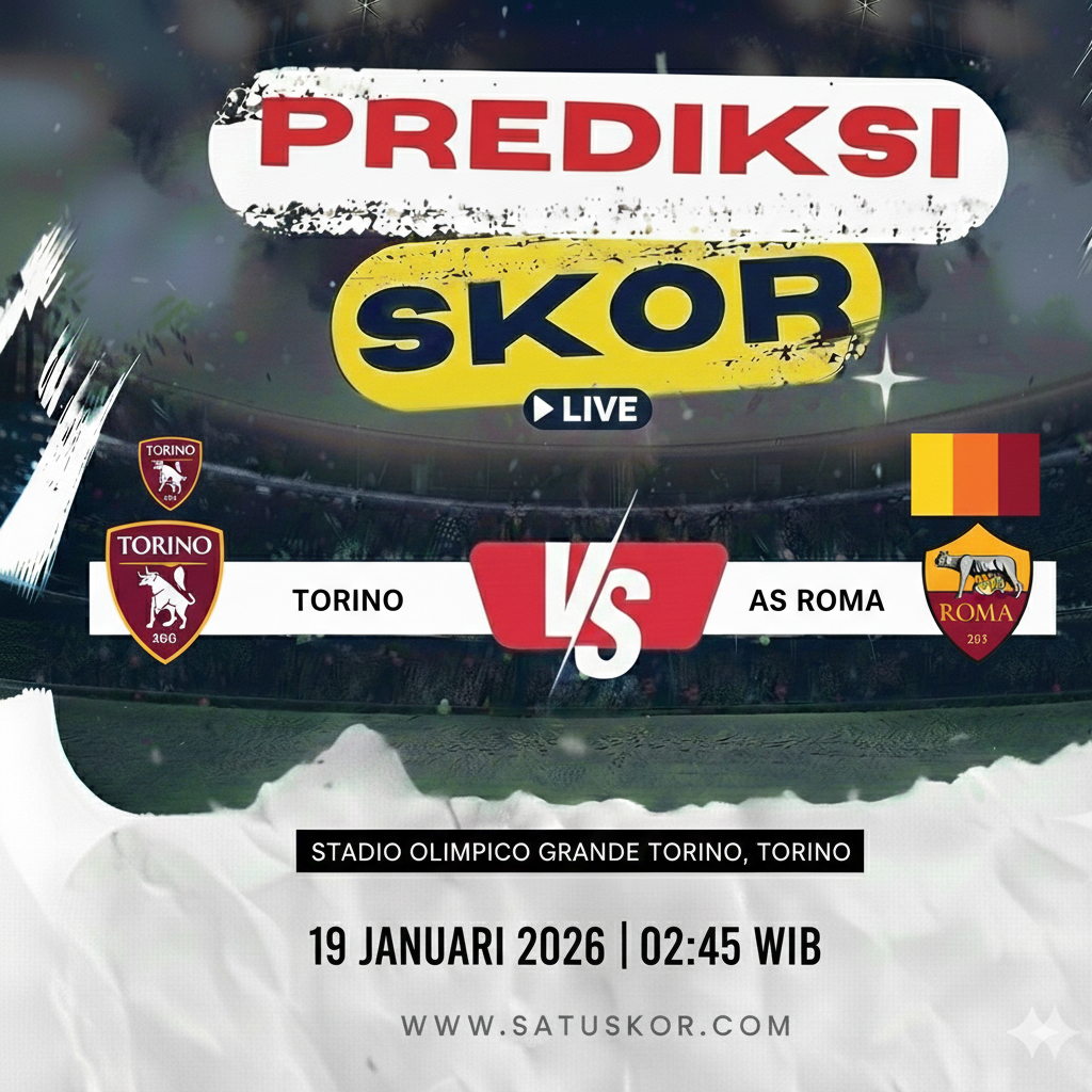 Satuskor.com – Prediksi pertandingan menarik akan tersaji pada Senin, 19 Januari 2026, ketika Torino vs AS Roma dalam lanjutan Serie A 2025/2026. Laga akan berlangsung di Stadio Olimpico Grande Torino pada pukul 02:45 WIB dan disiarkan melalui beIN Sports serta platform streaming Vidio.